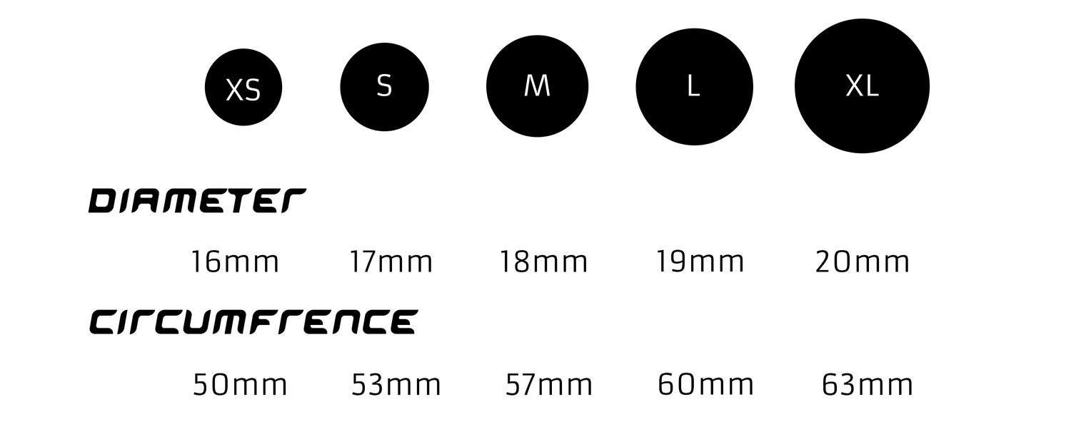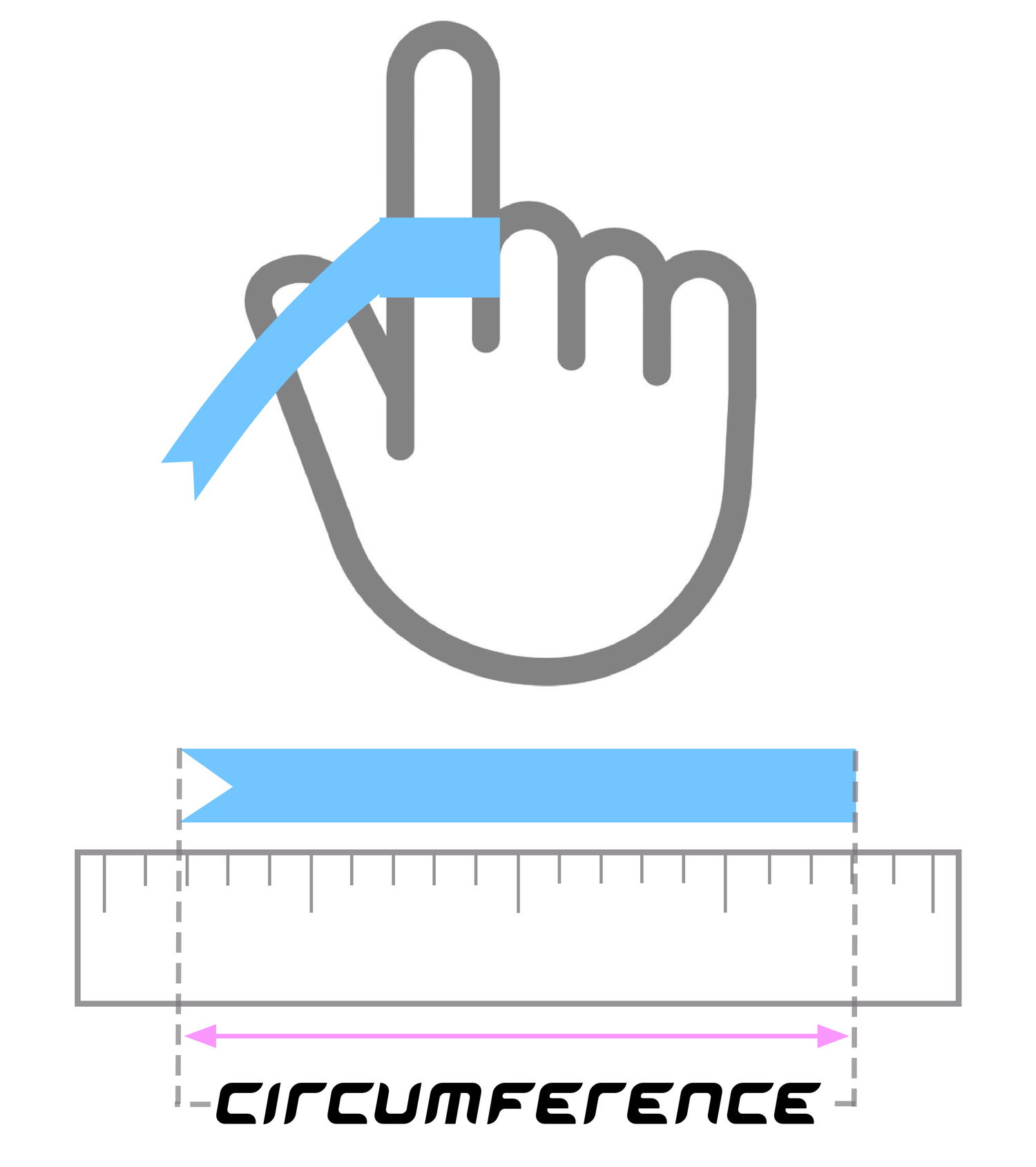 Wrap a piece of fabric or thread around your finger, measure its length, and find the corresponding size in the circumference row of our size chart above.