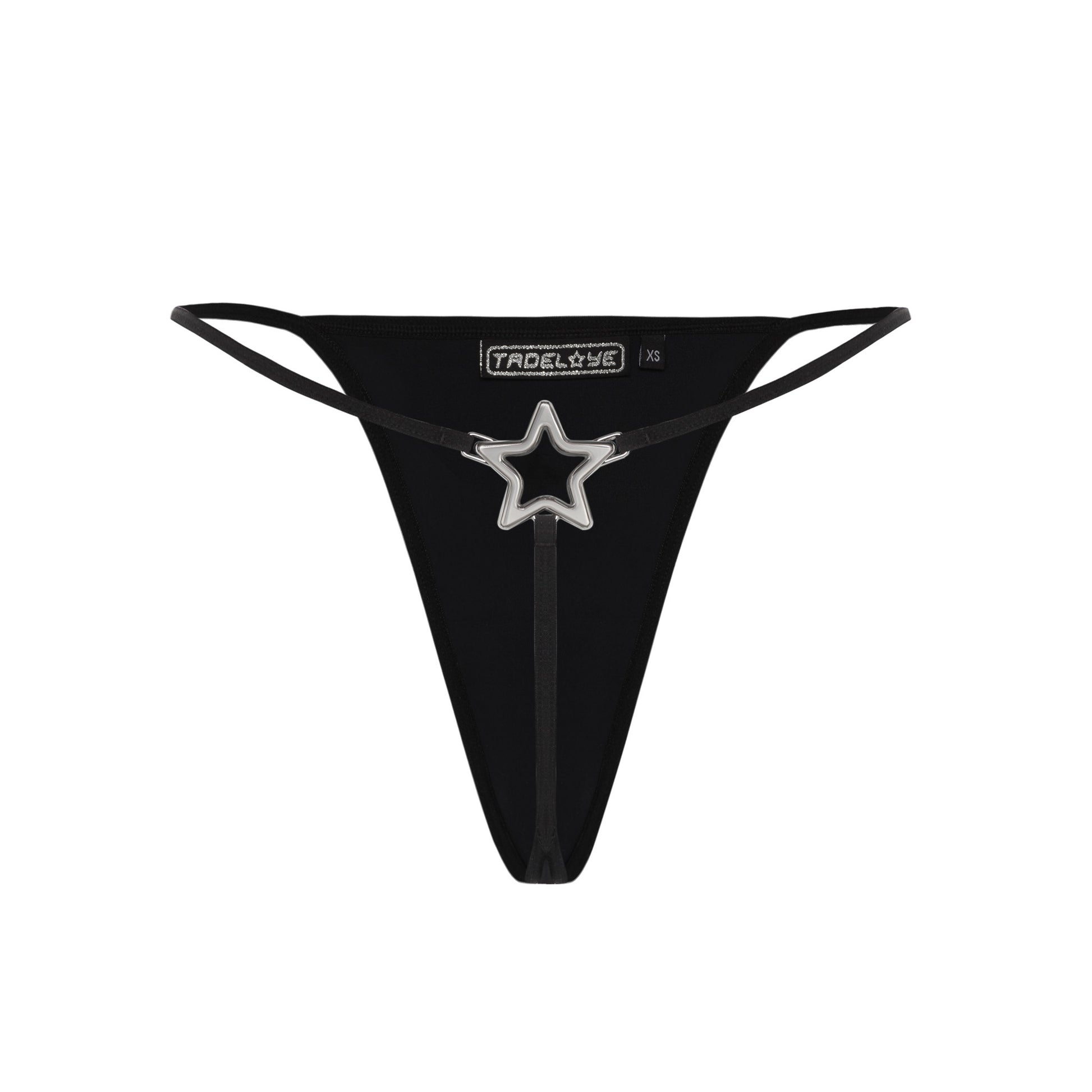 Stretch lycra thong with metal star detail, suitable for use as underwear or swimwear.